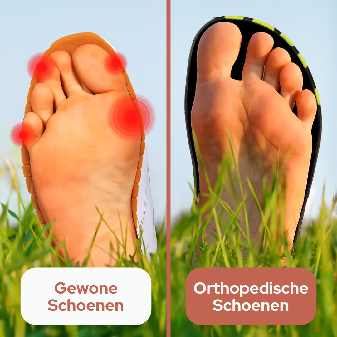 Juiste Houding & Lichaamsbalans: Orthopedisch ontwerp dat de druk gelijkmatig verdeelt en de natuurlijke stand van de tenen herstelt.